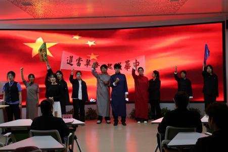 大会期间,精彩纷呈的文艺节目轮番上演,为现场师生呈现了一场红色文化盛宴。情景剧《西安事变》穿越时空,重温民族危亡之际的大义抉择;合唱《我和我的祖国》旋律悠扬,抒发青年学子对祖国的赤诚热爱;话剧《觉醒年代》再现百年前新青年的求索之路,激荡赓续红色血脉的壮志豪情;红色朗诵《初心之问》展开跨时空对话,探寻初心密码;《潮声与归岸》融朗诵与合唱为一体;大合唱《没有共产党就没有新中国》气势恢宏,铿锵歌声凝结着对党的无限崇敬,彰显青年学子听党话、跟党走的坚定信念。
