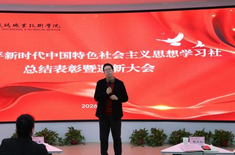 最后,邢卫红院长作总结讲话,他充分肯定“新时代学习社 ” 2025 年度的工作成效,并向优秀学员和新社员表示祝贺与欢迎。他强调,“新时代学习社 ”是深化理论学习、筑牢理想信念的重要平台,全体学员在过去一年积极学习与实践,展现出西铁院青 年的思想觉悟与担当。他希望大家持续深化理论武装,坚持学用 结合,立足铁路专业特色,将学习成果转化为专业能力,将个人成长融入国家发展,在新时代展现新作为。