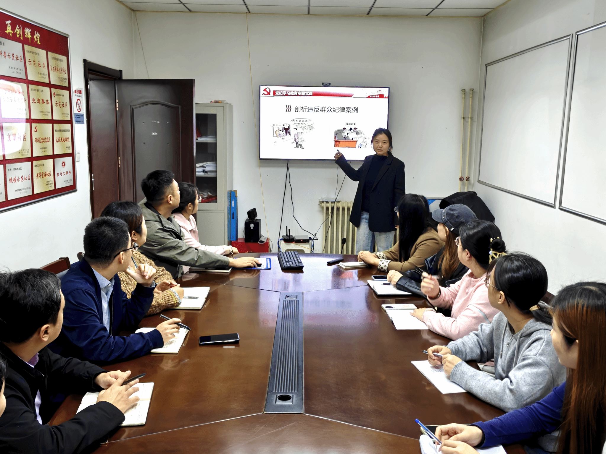 张赪老师以《把党的纪律建设摆在更加突出位置》为题,结合警示教育案例,从三个方面开展宣讲,首先,从延安时期黄克功案件入手,阐释加强党的纪律建设的历史逻辑;其次,通过重温“窑洞对”的故事,再讲到“窑洞之问”的“第二个答案”,让全体党员认识到新时代的使命任务;最后,通过讨论问答的形式,讲明白加强党的纪律建设的五个重要主要着力点。