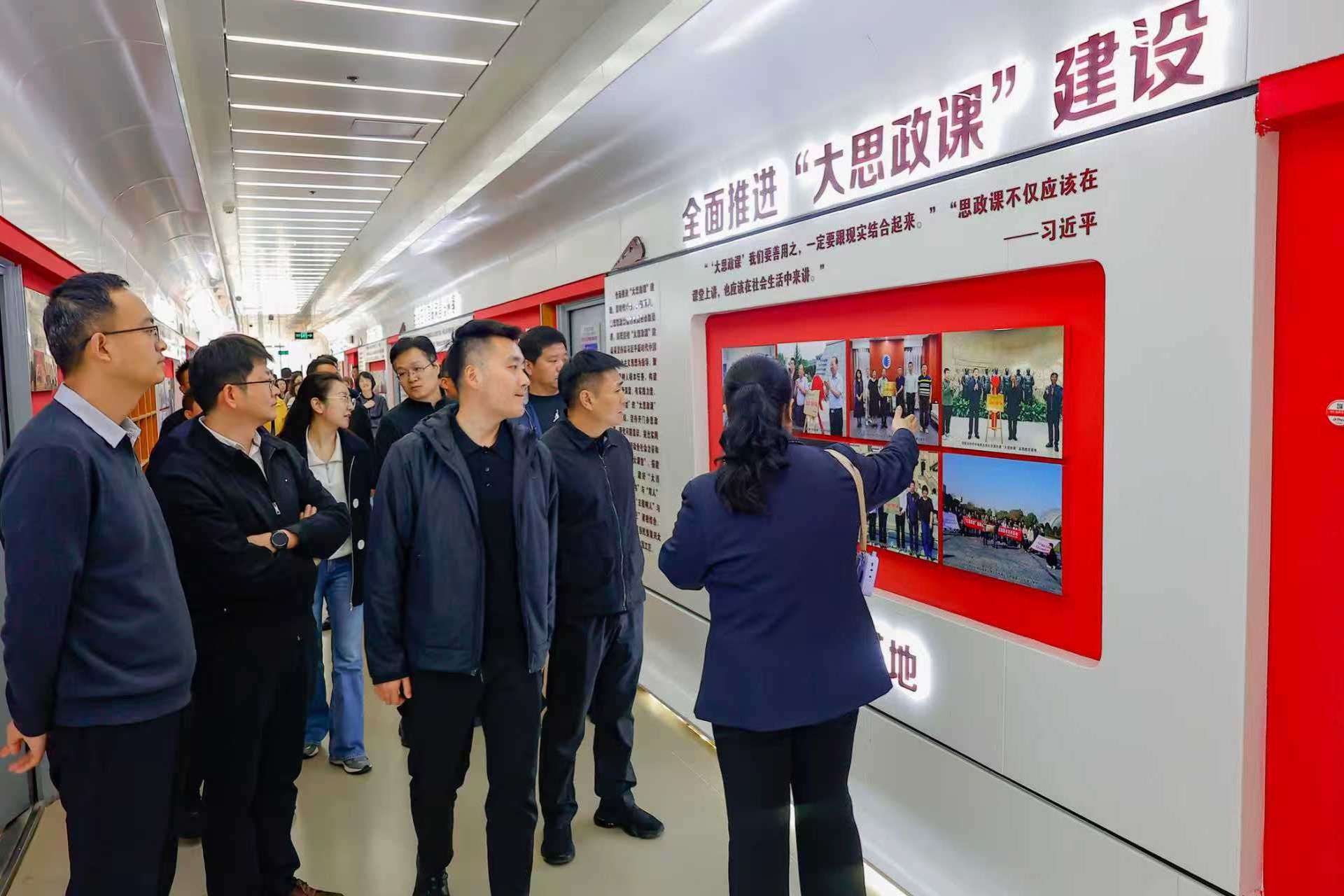 现场教学首站来到校史馆。学员们通过丰富的校史文物、图文展陈和数字化展示系统,全面了解了我校自1956年建校以来的发展历程,重点学习了学校在铁路行业人才培养、技术创新以及服务“一带一路”倡议中发挥的重要作用,深刻感受到西铁职院深厚的办学积淀与强烈的时代使命感。