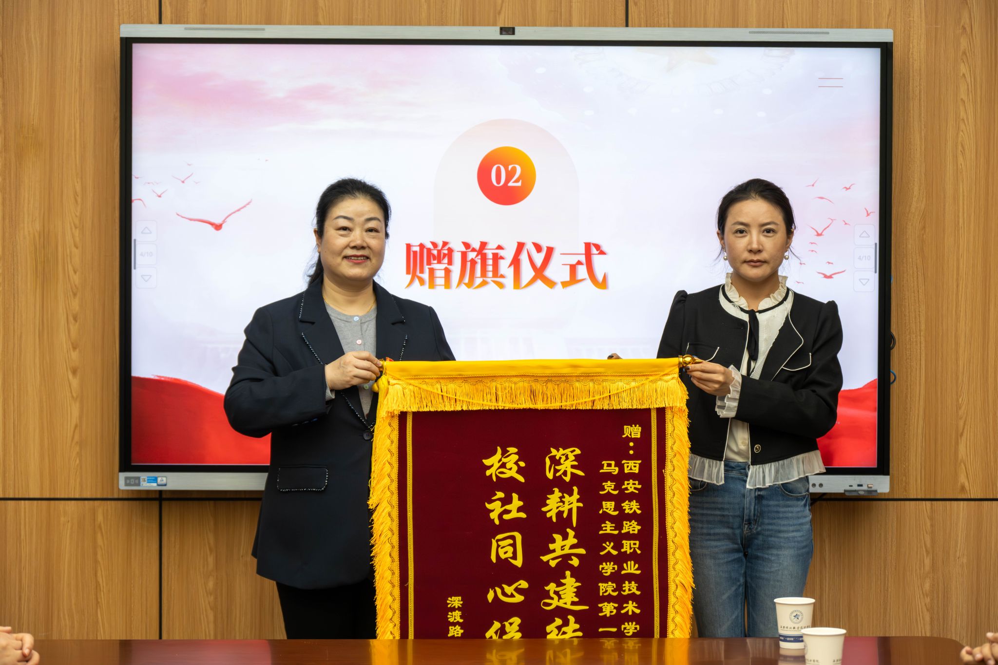 随后,深渡路社区党支部书记、居委会主任马琳向马院第一党支部赠送“深耕共建结硕果 校社同心促共赢”锦旗。赵建英代表马院第一党支部接受了锦旗。这标志着双方的合作再上新台阶。